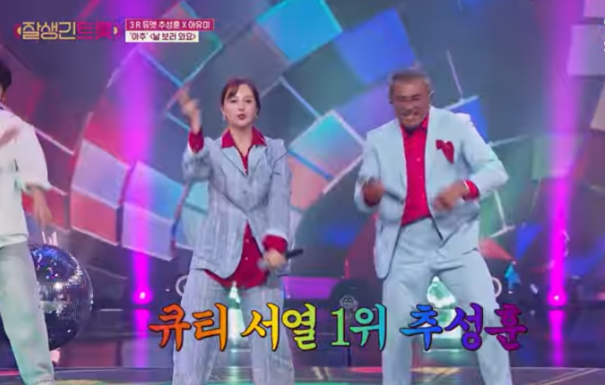 두 사람은 방미의 히트곡 ‘날 보러 와요’를 복고 콘셉트로 재해석하며 색다른 무대를 완성했다. 커플룩 의상과 함께 ‘생계형 부부’라는 유쾌한 설정까지 더해, 재미와 감성을 동시에 잡았다. 특히 아유미는 추성훈의 키와 리듬에 맞춰 파트를 조절하며 팀워크를 배려했고, “오빠가 너무 순수해서 자주 놀림당한다”며 무대 뒤의 이야기도 공개해 훈훈함을 자아냈다.