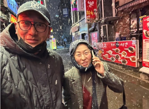 눈 속 다정한 투샷…SNS에서 화제